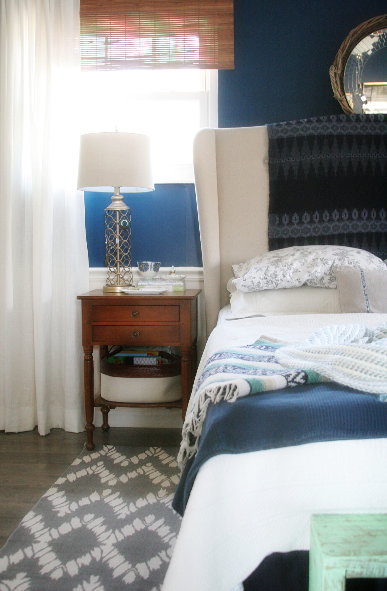 from Master Bedroom Makeover grey rug navy walls white